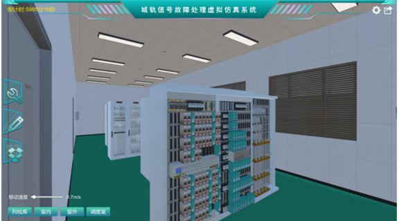 技能操作竞赛考核信号故障分析与处理、信号设备安装与调试、信号设备维护3个项目。友道科技研发的城轨信号设备虚拟仿真培训考核系统是通过3D仿真技术1:1还原了城轨信号设备,系统中搭建了四个场景:信号控制室、室外站场、车库及调度中心,其中包含转辙机、信号机、计轴、50HZ相敏轨道电路、车载、ATS等设备检修。城轨信号实训平台由ZDJ9转辙机,组合柜、电源转换模块、信号组合层自动导通系统组成。通过平台的实训,使城市轨道交通信号专业学员了解并掌握转辙机系统原理。