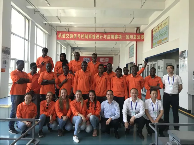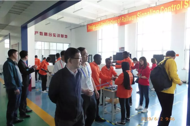 首批来自肯尼亚的15名“吉铁院—北交大国际人才联合培养”学历教育留学生组成的代表队进行了国际组赛项体验。吉林省教育厅副厅长战高峰、吉林省教育厅职业与成人教育处副处长姜云东一行观摩国际组赛项体验。