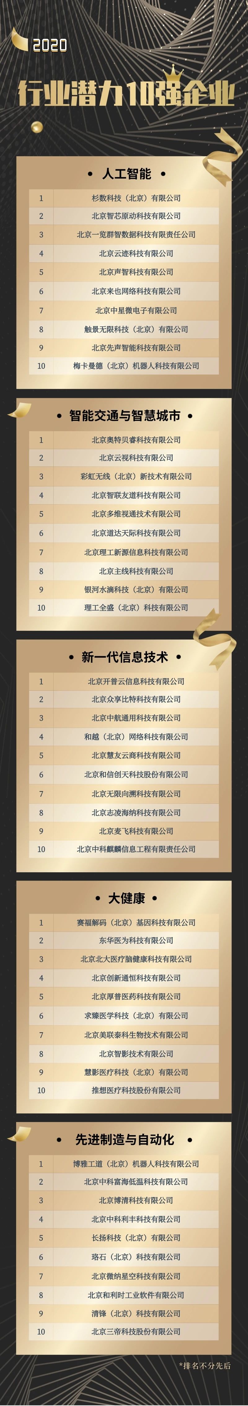2020高成长企业TOP100年度盛典,致力于发挥中关村和北京的资源禀赋和创新优势,旨在汇聚一批拥有自主知识产权核心技术、具有自主创新能力、兼具强科技实力和高成长性的全行业TOP100高成长企业,同时,基于北京市十大高精尖产业布局重点和科技创新热点,以及大数据、人工智能、先进制造等新一代信息技术的发展和推动,越来越多的传统行业正在被改造甚至被颠覆,新物种、新产品和新服务不断孕育而出。