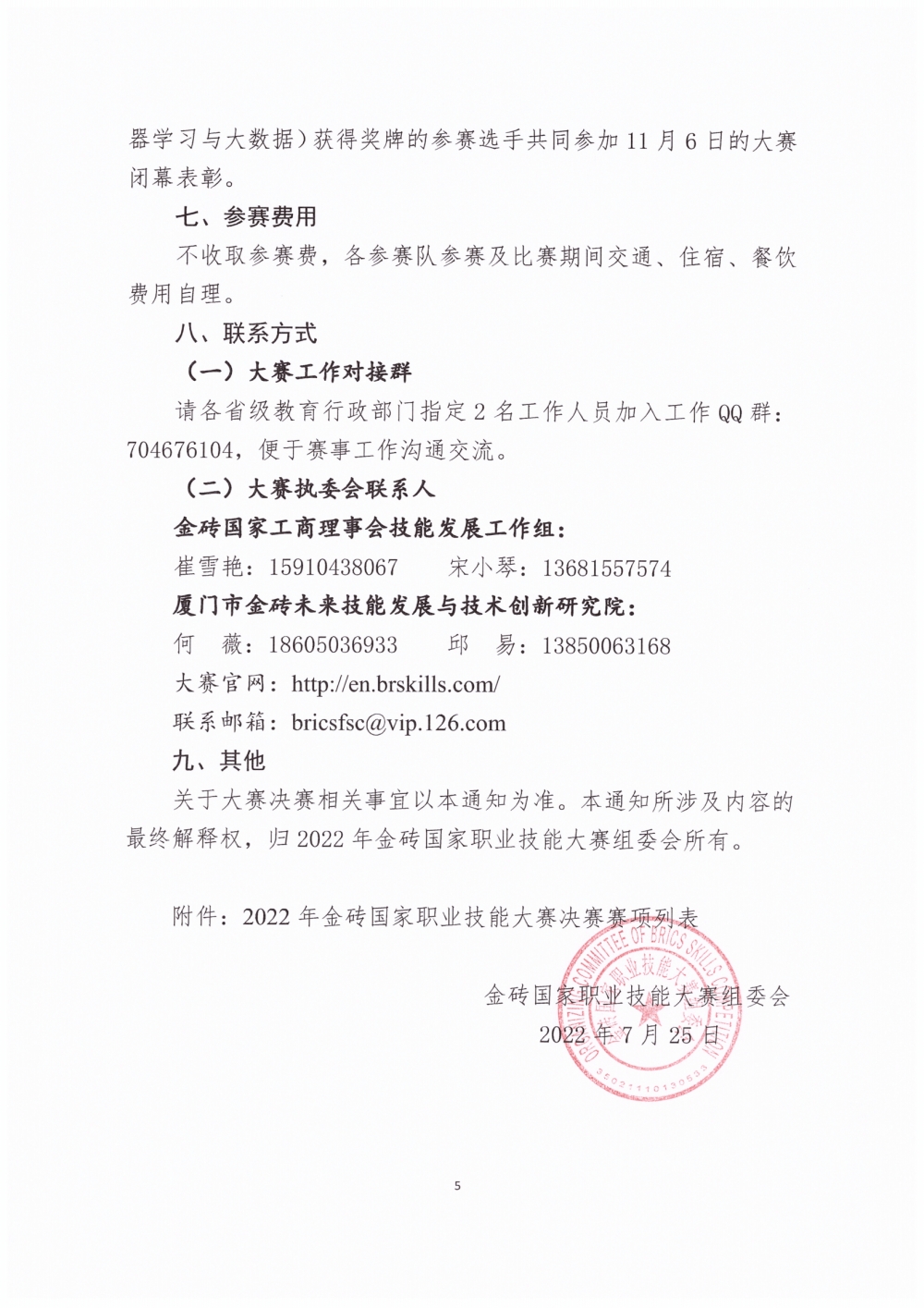 关于组织参加2022年金砖国家职业技能大赛(决赛)的正式通知