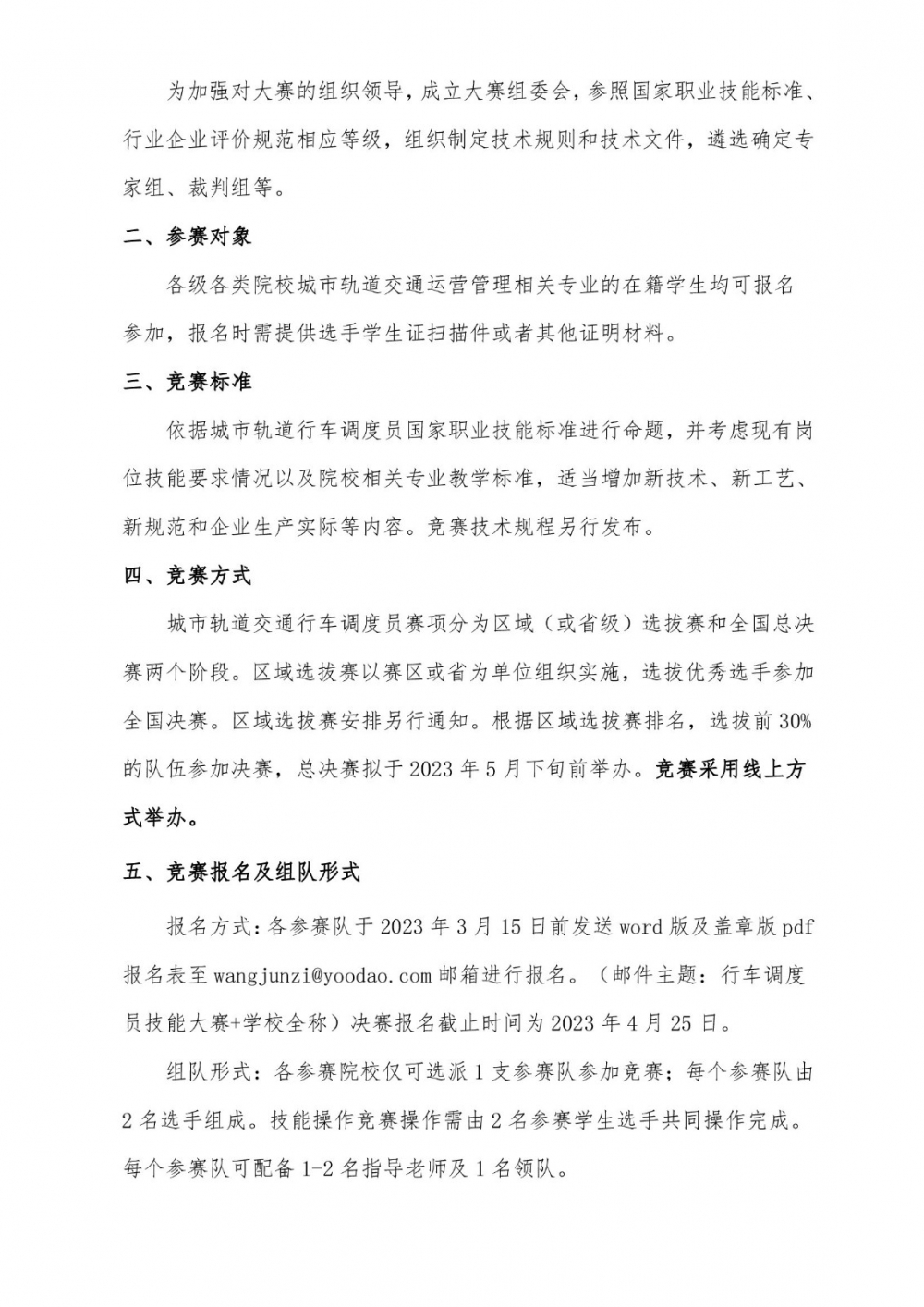 关于举办2022年“友道杯”全国交通运输职业院校城市轨道交通行车调度员技能大赛的通知