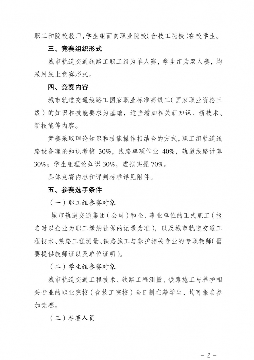 关于举办全国轨道交通应急行业“城市轨道交通线路工”全国总决赛的通知